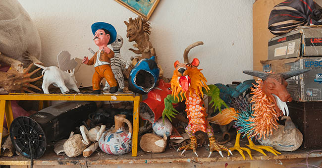 Within popular art, cartonería has great importance for its creative development when making various figures with paper and cardboard such as Alebrijes, Judas, as well as skulls and Catrinas for celebrations such as the Day of the Dead.