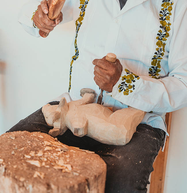 Margarito Melchor Fuentes is a pioneer in wood carving. he was born on January 26, 1950, and began his exciting career in this noble craft in 1970, at the age of 20. In ancient times, his ancestors were already artisans who, in order to cultivate the land, dedicated themselves to the development of their work tools, which were used to sow the land, such as the plow that was used to make furrows and sow corn and beans, and yokes were made to harness bulls and carts to harvest the crops.